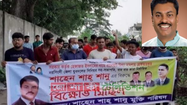 নরসিংদীতে যুবদল নেতা শানুর মুক্তির দাবিতে বিক্ষোভ মিছিল