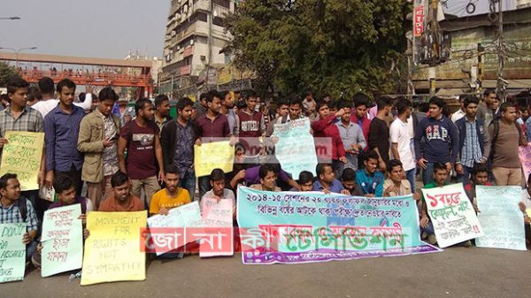 হল ও ক্যাম্পাস খোলার দাবীতে নীলক্ষেতে শিক্ষার্থীদের সড়ক অবরোধ