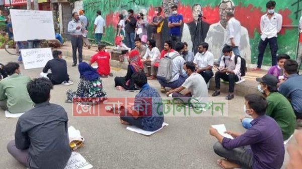 শিক্ষাপ্রতিষ্ঠান খোলার দাবিতে রাজশাহীতে রাজপথেই প্রতীকী ক্লাস