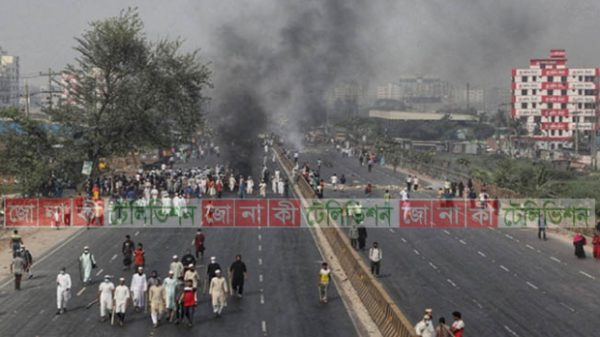 হরতালের সমর্থনে নরসিংদীতে ঢাকা-সিলেট মহাসড়ক অবরোধ