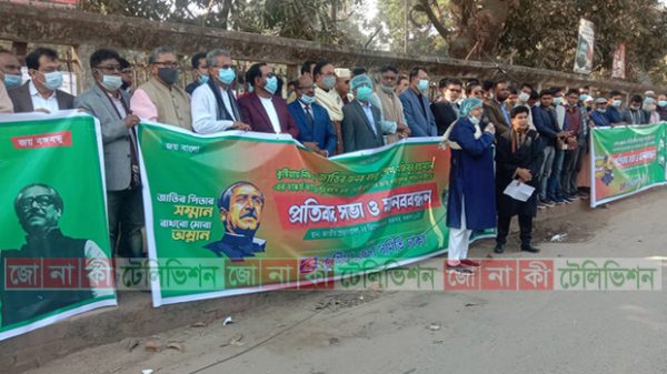 জাতির জনকের ভাস্কর্য ভাঙ্গার প্রতিবাদে নরসিংদীতে হিরু এমপির সমাবেশ