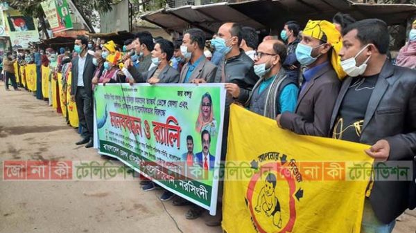 ভাস্কর্য ভাঙার প্রতিবাদে নরসিংদীতে স্বাস্থ্য সহকারীদের মানববন্ধন