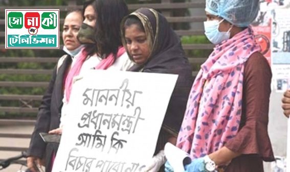 নির্যাতনের বিচার চেয়ে প্ল্যাকার্ড হাতে সাংবাদিক পারুল