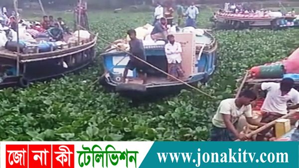 নরসিংদীর মেঘনা নদী যেন কচুরিপানার অভয়ারণ্য, ভোগান্তিতে চরবাসি