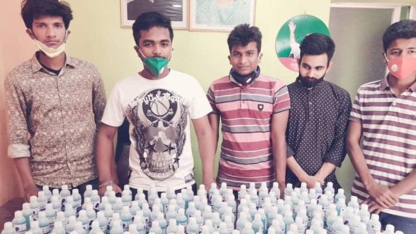নরসিংদীতে আরো পাচঁ শতাধিক হ্যান্ড স্যানিটাইজার নিয়ে সাধারন মানুষের পাশে ছাত্রলীগ নেতা রিমন