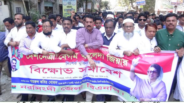 খালেদা জিয়ার মুক্তির দাবীতে নরসিংদীতে বিক্ষোভ