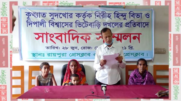 রায়পুরায় সুদখোরের কবলে পরে ভিটেবাড়ি হারালো এক হিন্দু পরিবার